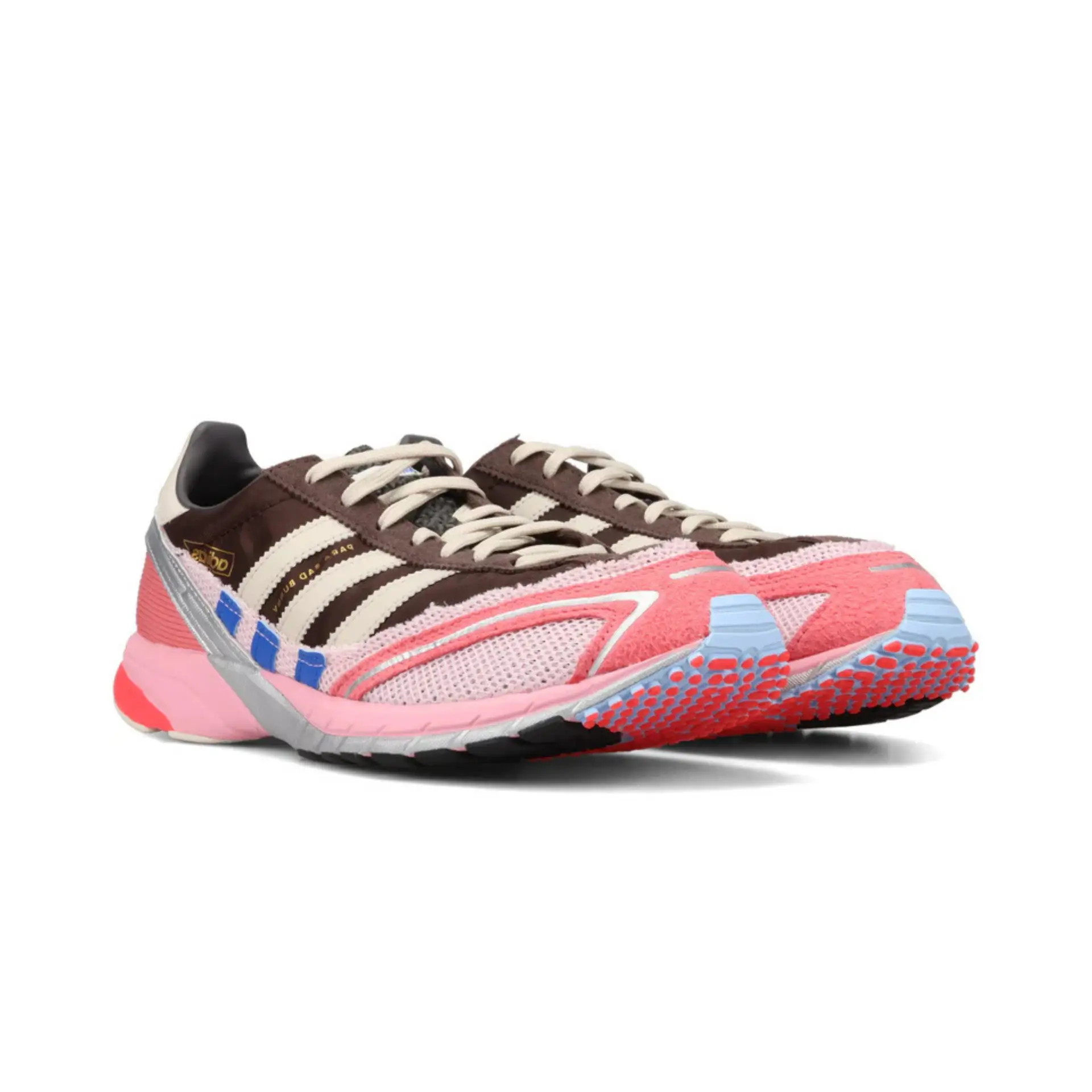 Las Adidas Adizero SL 72 Bad Bunny Brown Clear Pink representan una evolución audaz de la clásica SL 72. En esta colaboración, Bad Bunny fusiona el legado del atletismo con una sensibilidad moderna y artística. El resultado es una silueta potente, con una paleta marrón y rosa que mezcla lo rudo con lo suave.