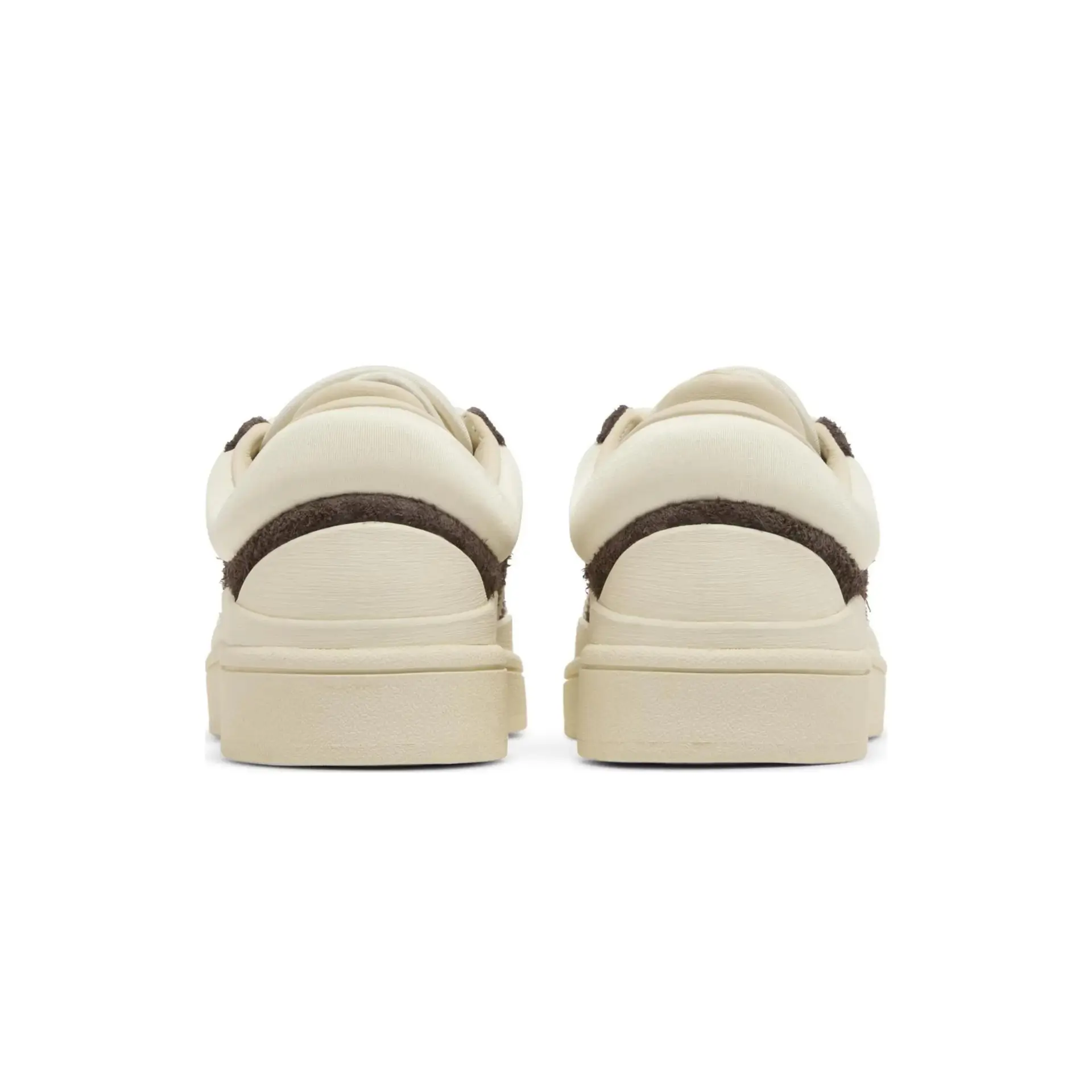 El upper está confeccionado en ante premium de color marrón, acompañado de detalles tonales en las tres franjas laterales y el talón.