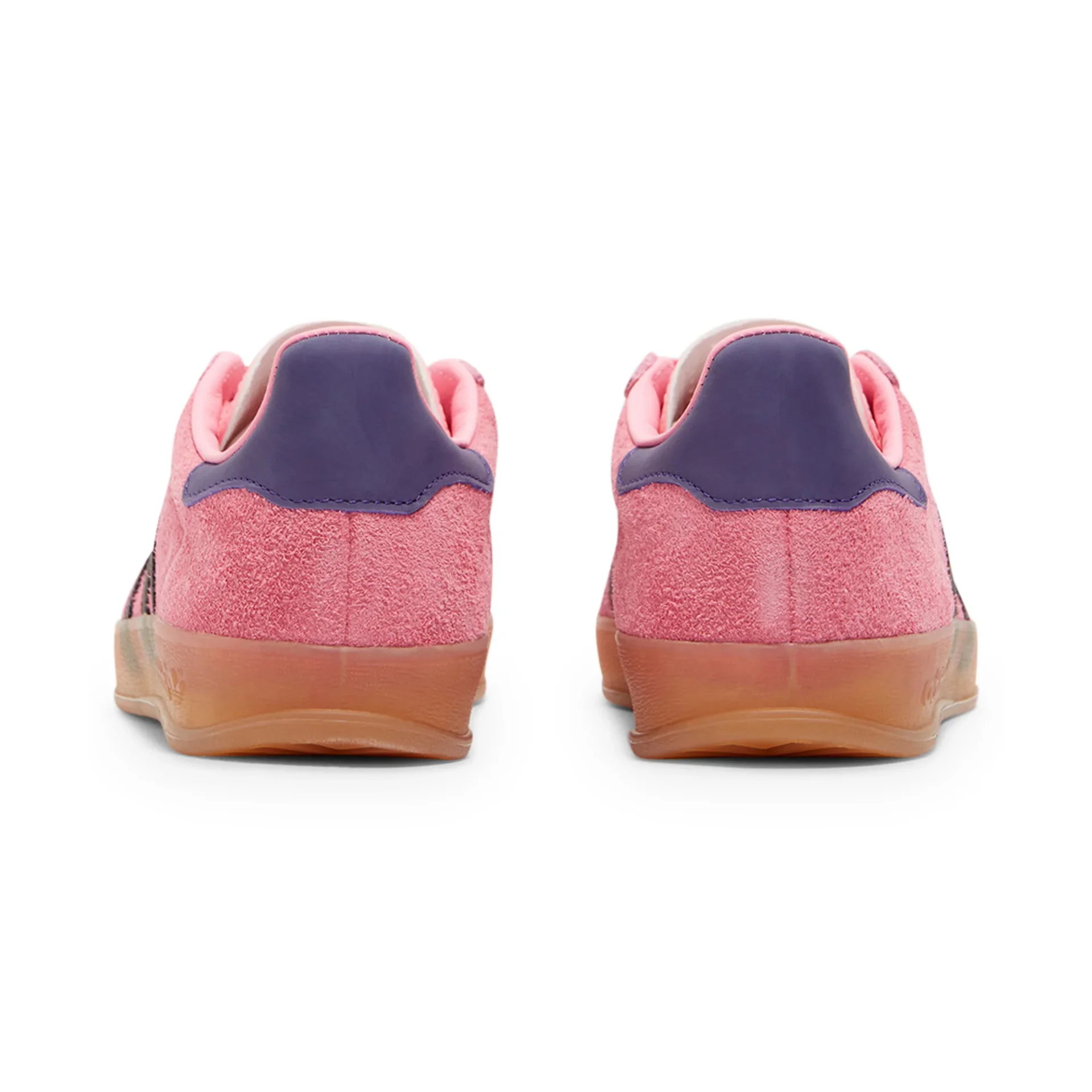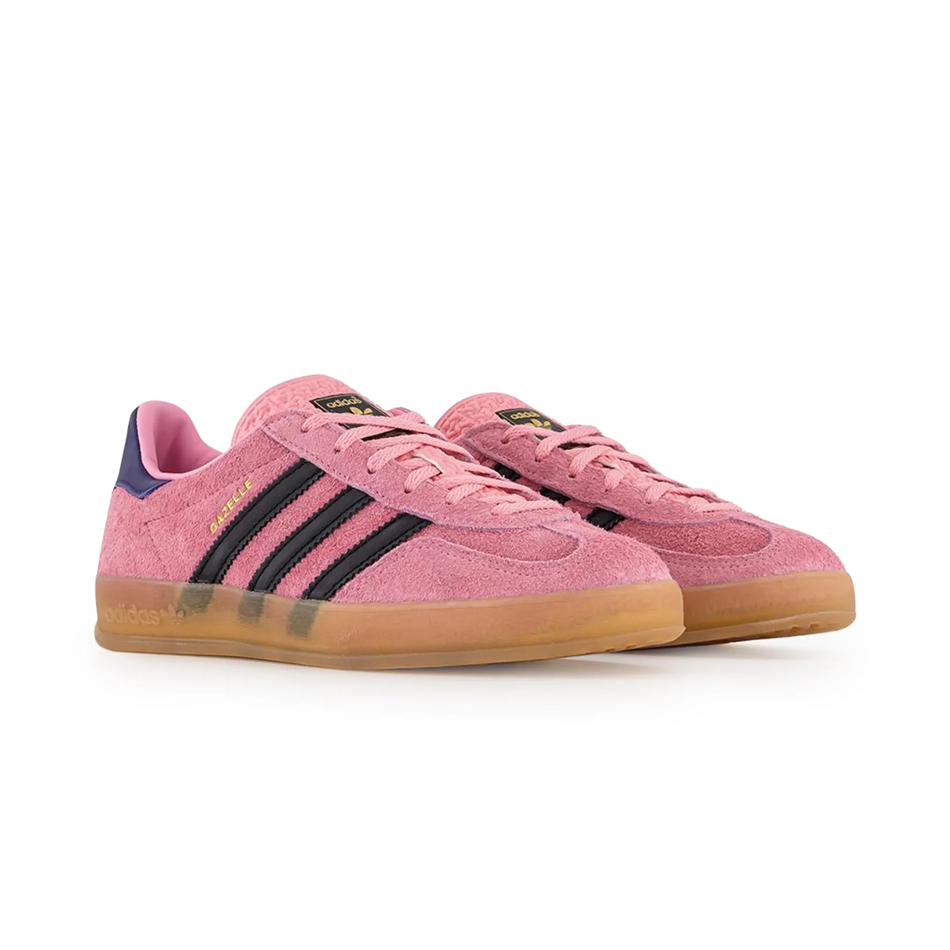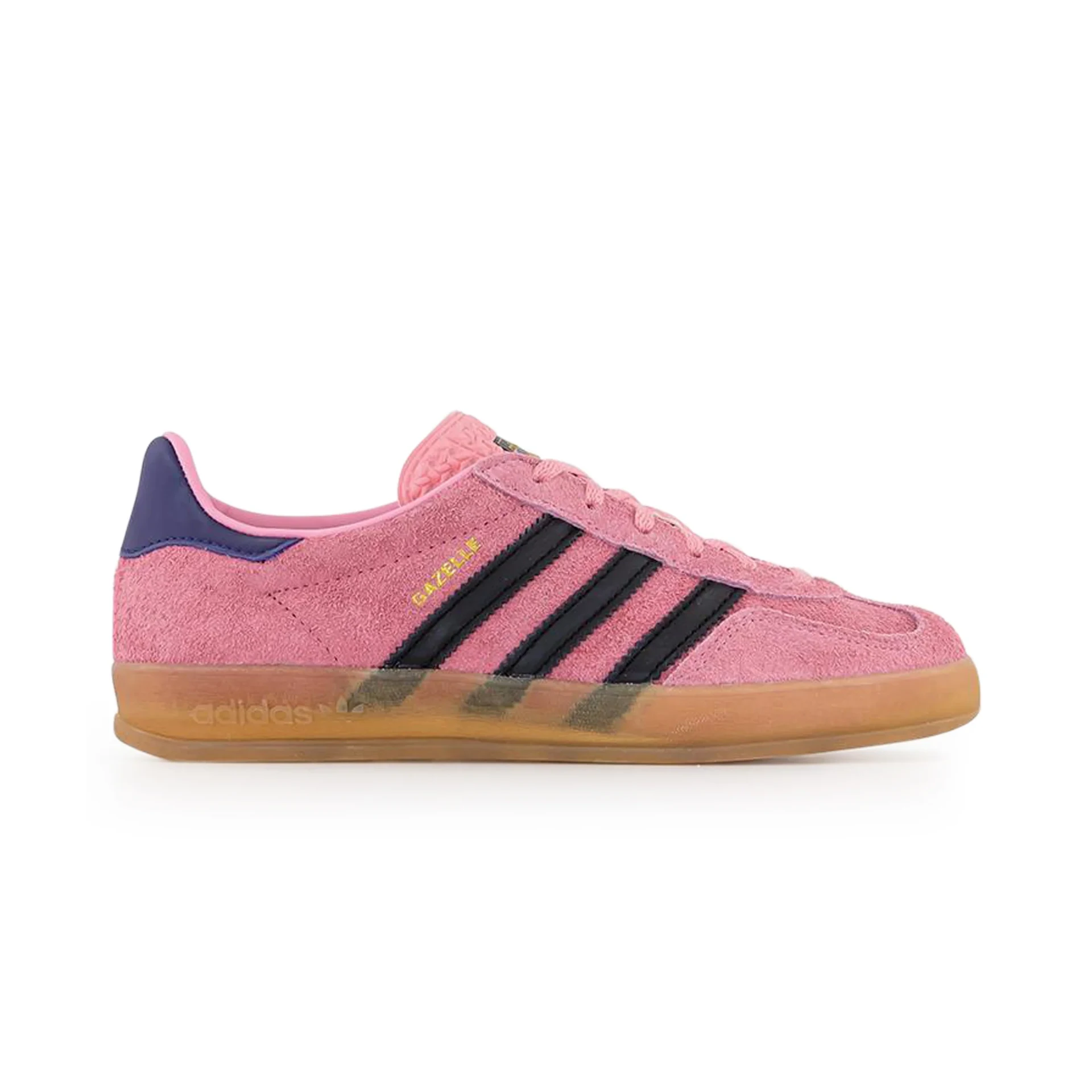 Las Adidas Gazelle Indoor Bliss Pink Purple no pasan desapercibidas. Este modelo revive el espíritu vibrante de los años 70 con una combinación de colores audaz: rosa intenso en el upper de gamuza y detalles púrpura en las tres bandas y el talón. La suela translúcida color caramelo completa el look con un aire nostálgico irresistible.