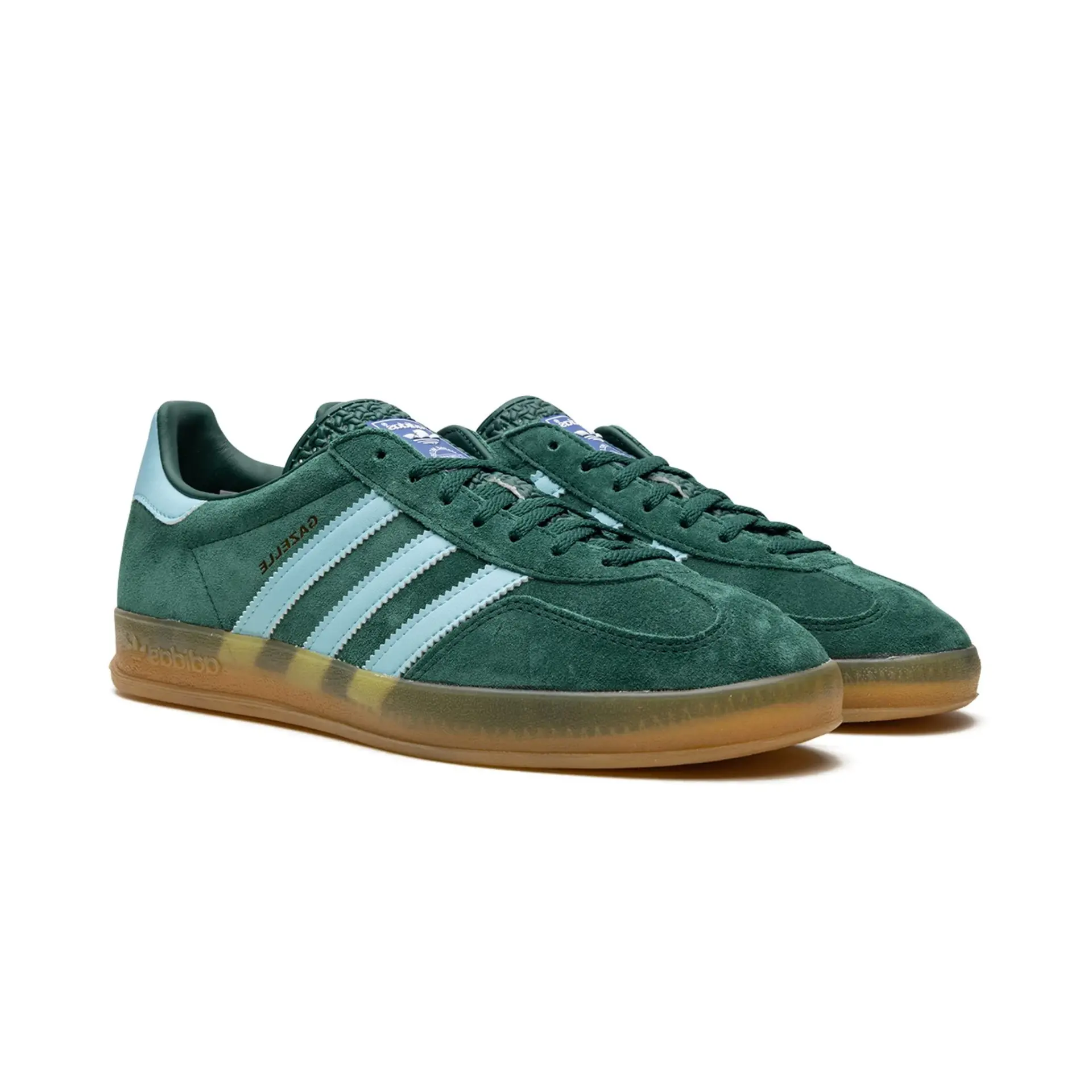 Las Adidas Gazelle Indoor Collegiate Green son una celebración del legado deportivo y estético de Adidas. Con un upper de gamuza en verde universitario intenso, esta zapatilla transmite energía retro y sofisticación casual. Las tres bandas blancas y los detalles dorados acentúan su carácter clásico.