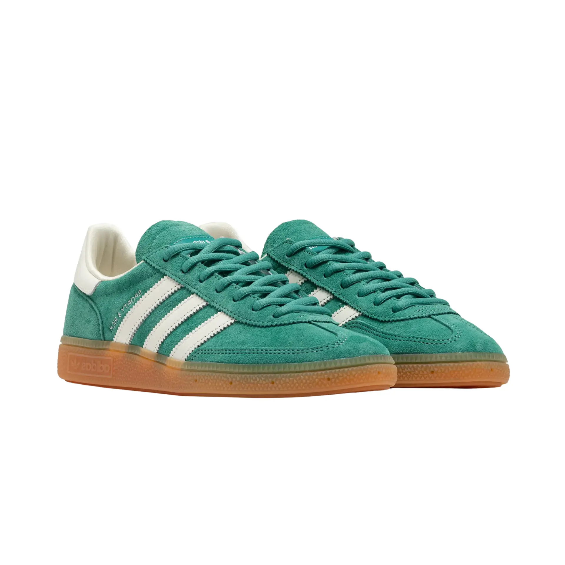 Las Adidas Handball Spezial Sporty & Rich Green son el resultado de una colaboración entre la estética vintage del catálogo Spezial y el estilo sofisticado de la firma neoyorquina Sporty & Rich. Este modelo se presenta en una tonalidad verde rica y profunda sobre gamuza premium, con detalles dorados y las tres bandas en blanco crema, que elevan el diseño a una categoría más refinada.