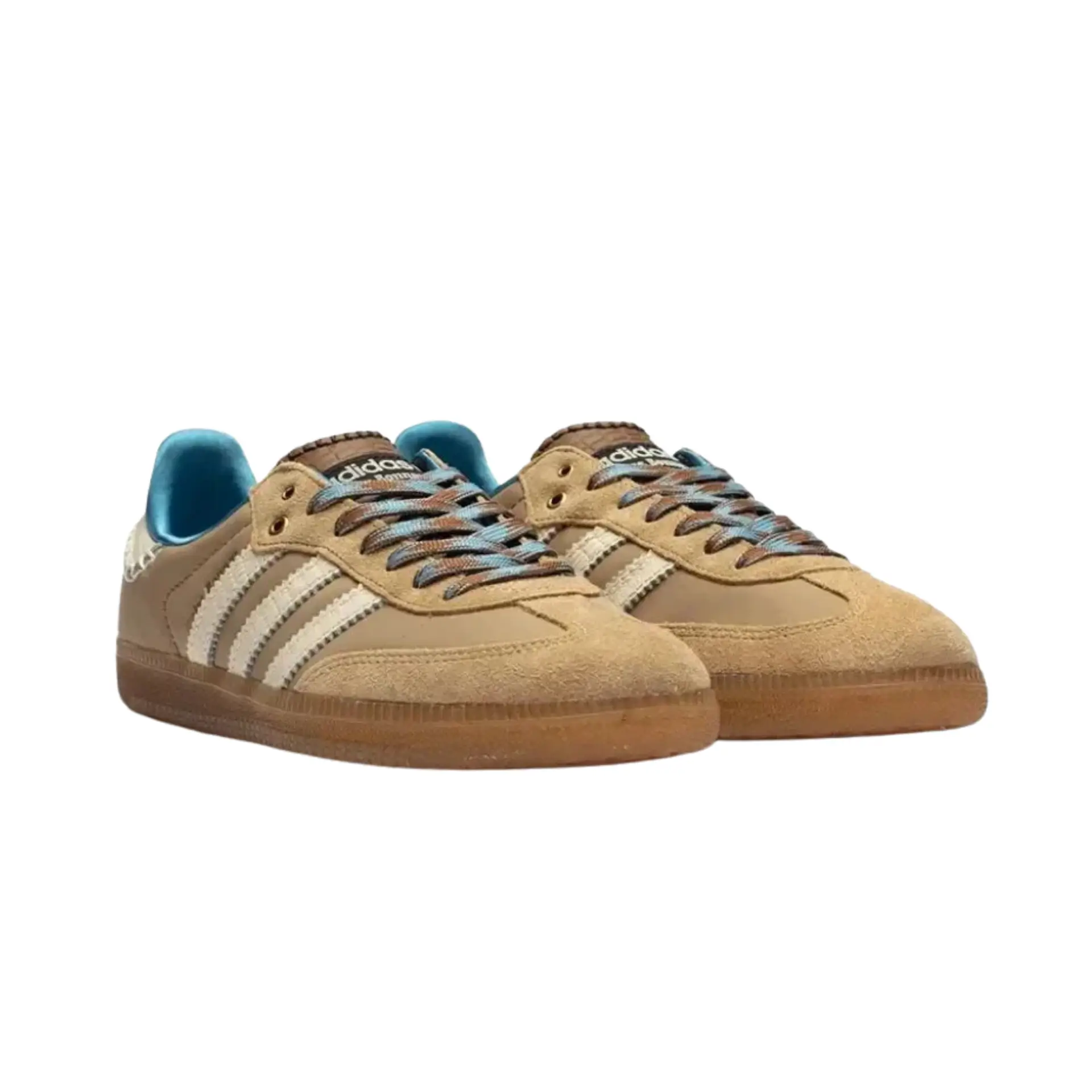 Las Adidas Samba Nylon x Wales Bonner Desert White reinterpretan la silueta clásica con una elegancia contemporánea que fusiona herencia deportiva y alta moda.