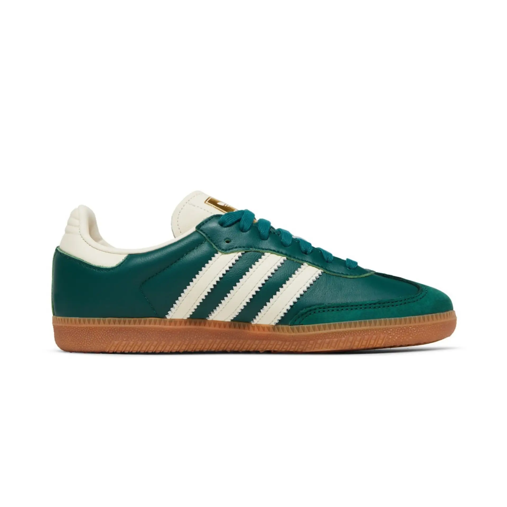Las Adidas Samba OG Collegiate Green Gold Metallic reviven el espíritu retro del fútbol de los años 50 con un colorway vibrante y lleno de carácter.