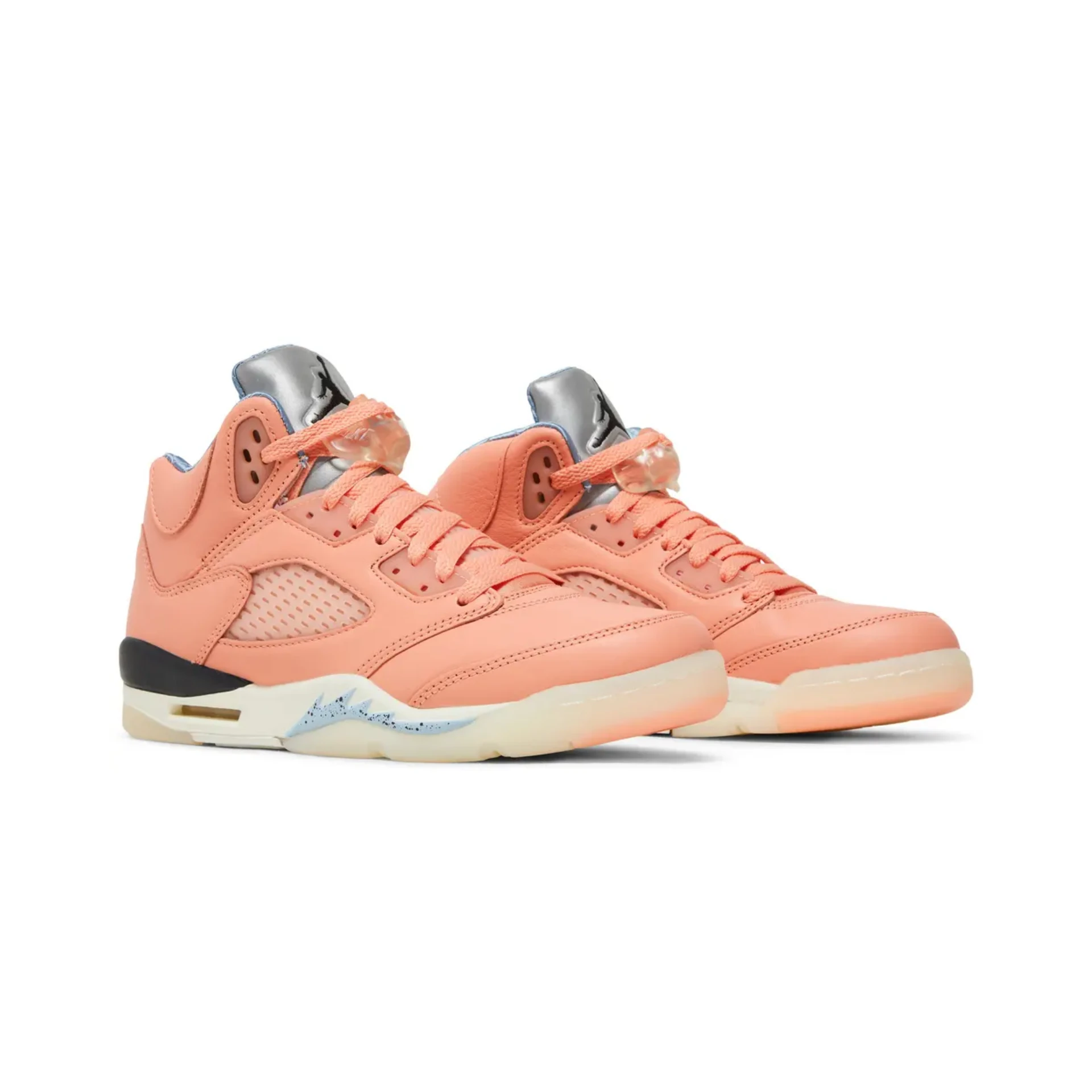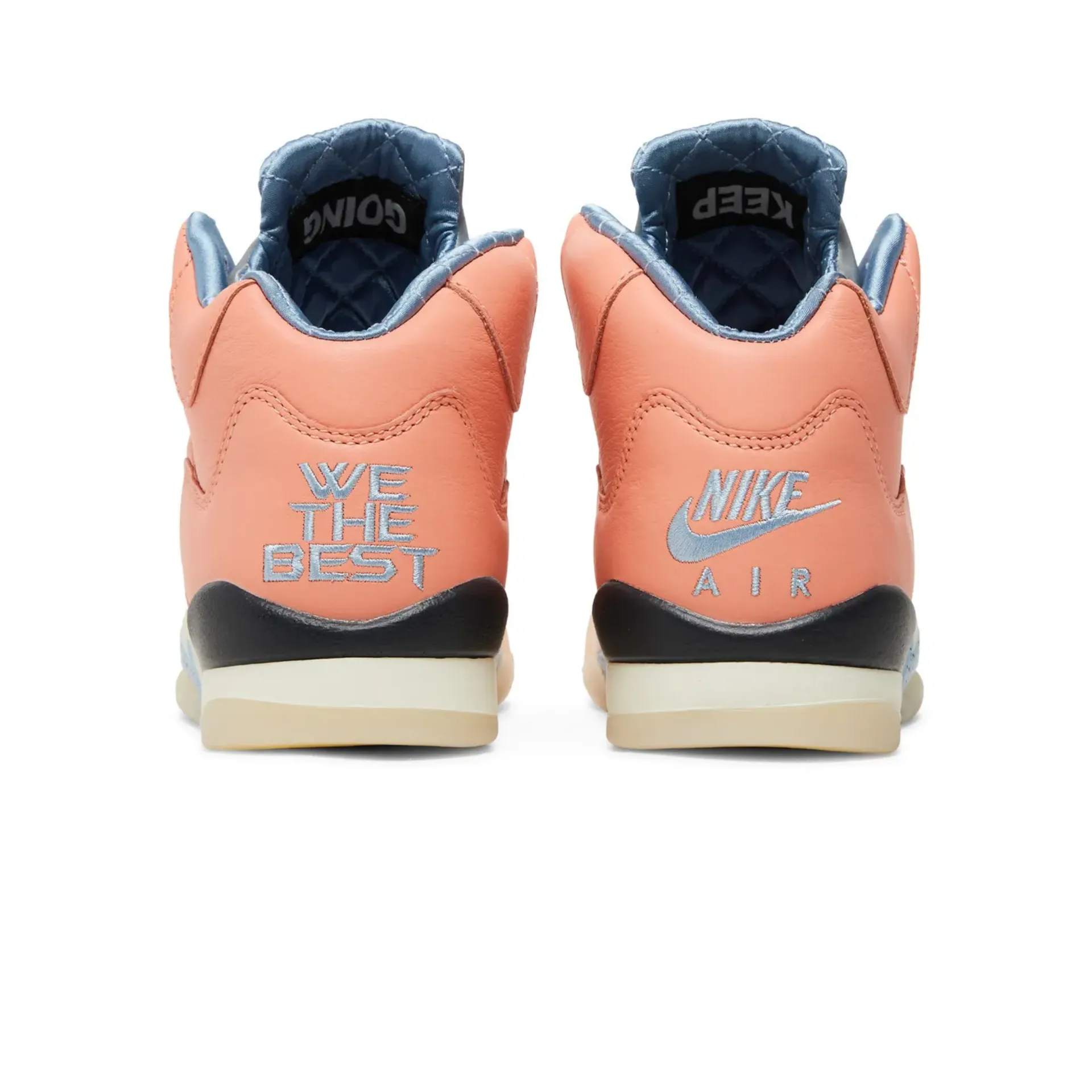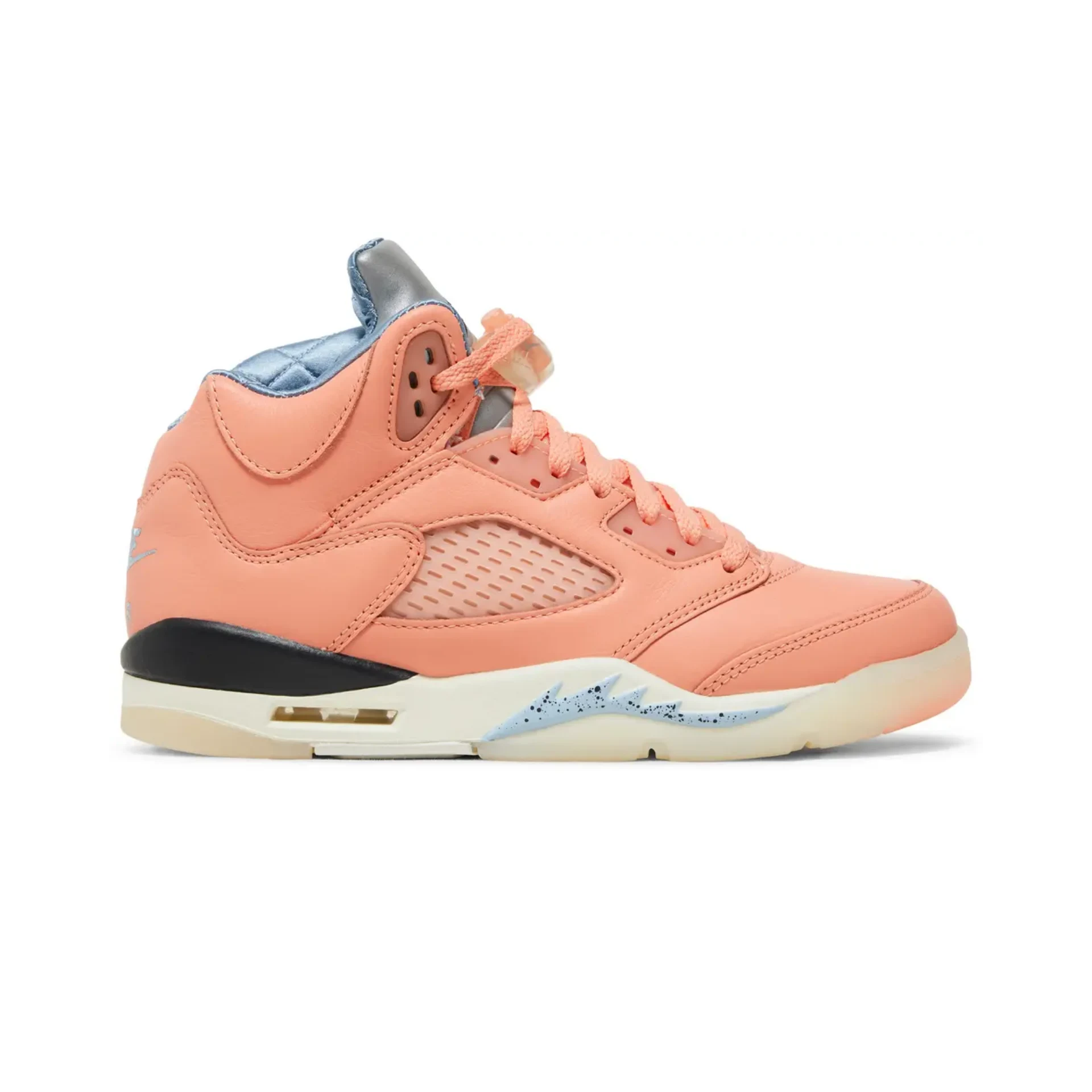 Las Air Jordan 5 Retro DJ Khaled We The Best Crimson Bliss (GS) celebran la energía positiva del productor musical con un diseño vibrante y exclusivo. Este modelo en versión GS (Grade School) luce un upper en tono melocotón con acentos celestes y detalles premium como el forro satinado y la inscripción “We The Best” en el talón, símbolo de confianza, éxito y estilo.