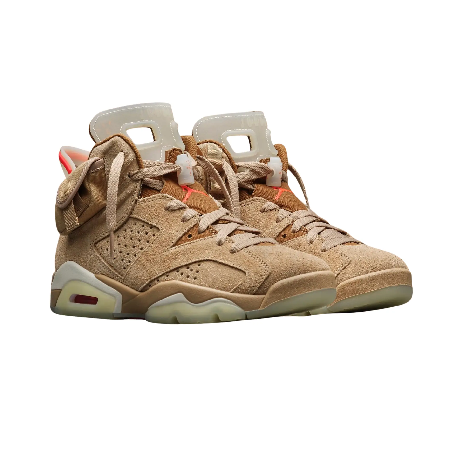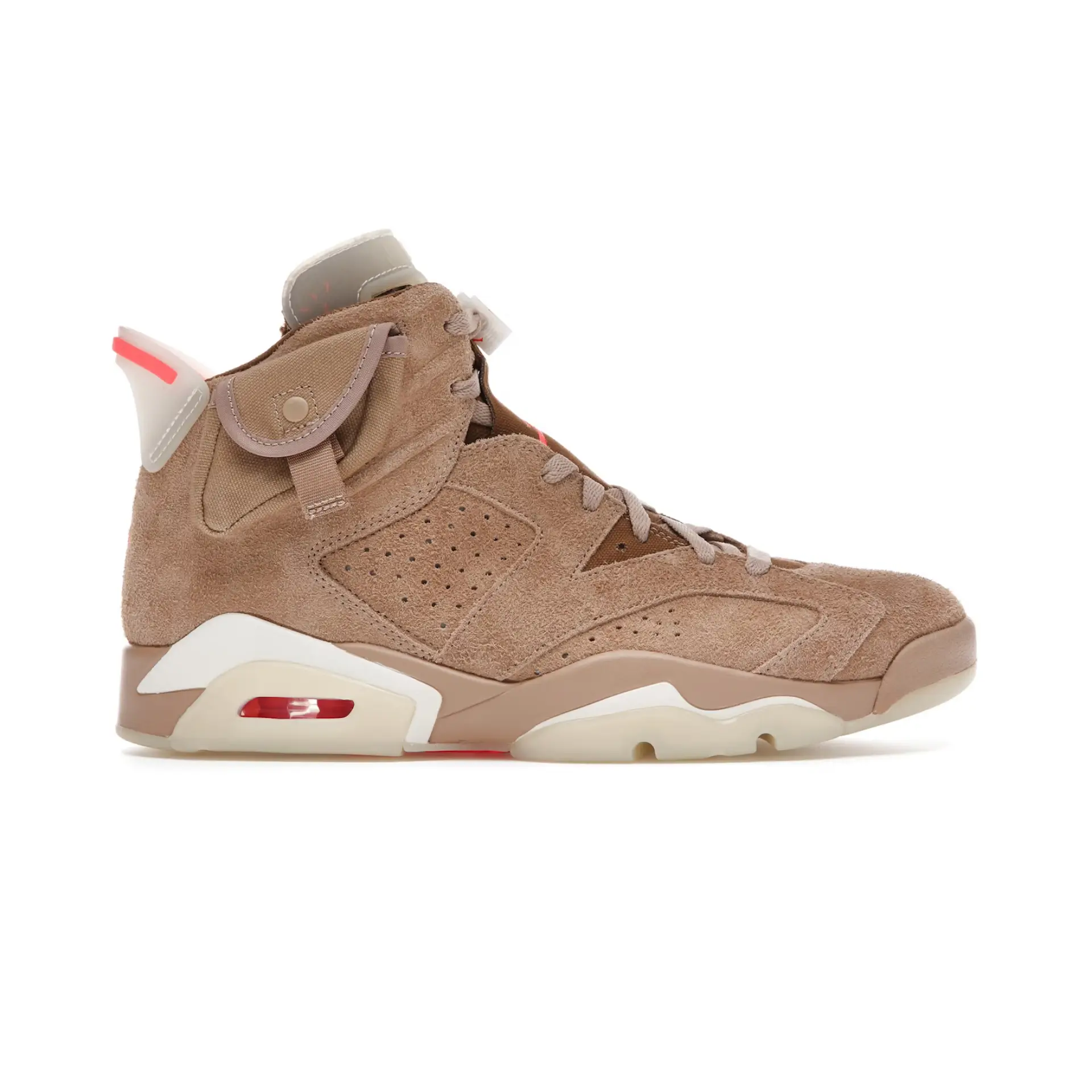 Las Air Jordan 6 Retro Travis Scott British Khaki se lanzaron en 2021 como la segunda entrega de la colaboración de La Flame sobre esta silueta retro.