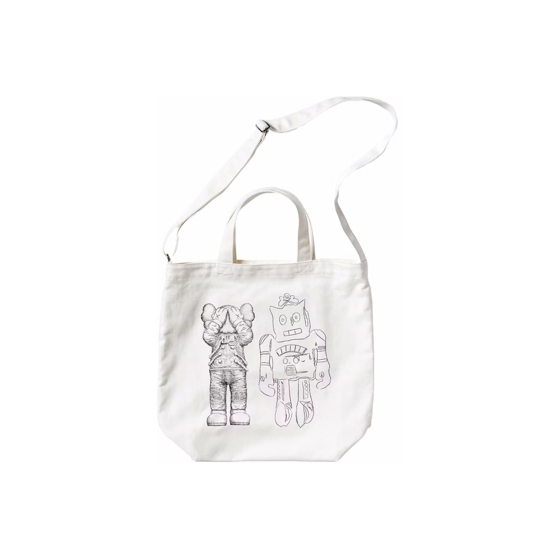 El KAWS × Uniqlo Warhol 2Way Tote Bag White forma parte de la colaboración cápsula “KAWS + Warhol” de Uniqlo, que celebra la primera exposición conjunta de los artistas en el Andy Warhol Museum. Este modelo destaca por su base blanca limpia y gráficos emblemáticos que mezclan la estética de Warhol con la reinterpretación visual de KAWS.