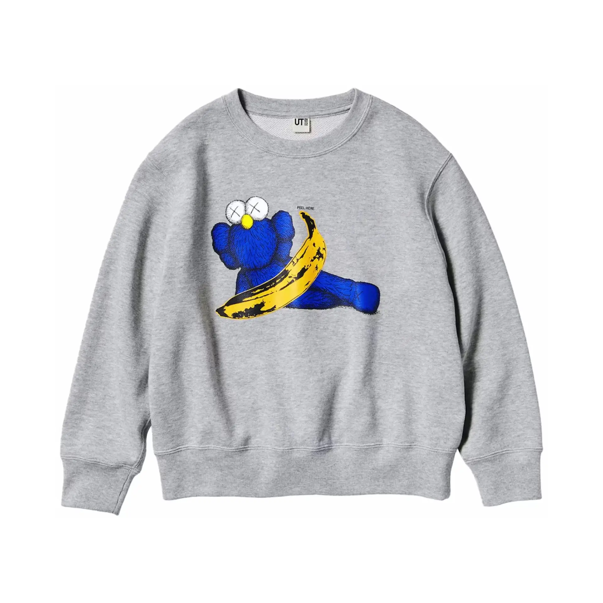 La KAWS × Uniqlo Warhol Graphic Sweatshirt Gray forma parte de la colección cápsula de Uniqlo que celebra la exposición “KAWS + Warhol” en el Andy Warhol Museum.