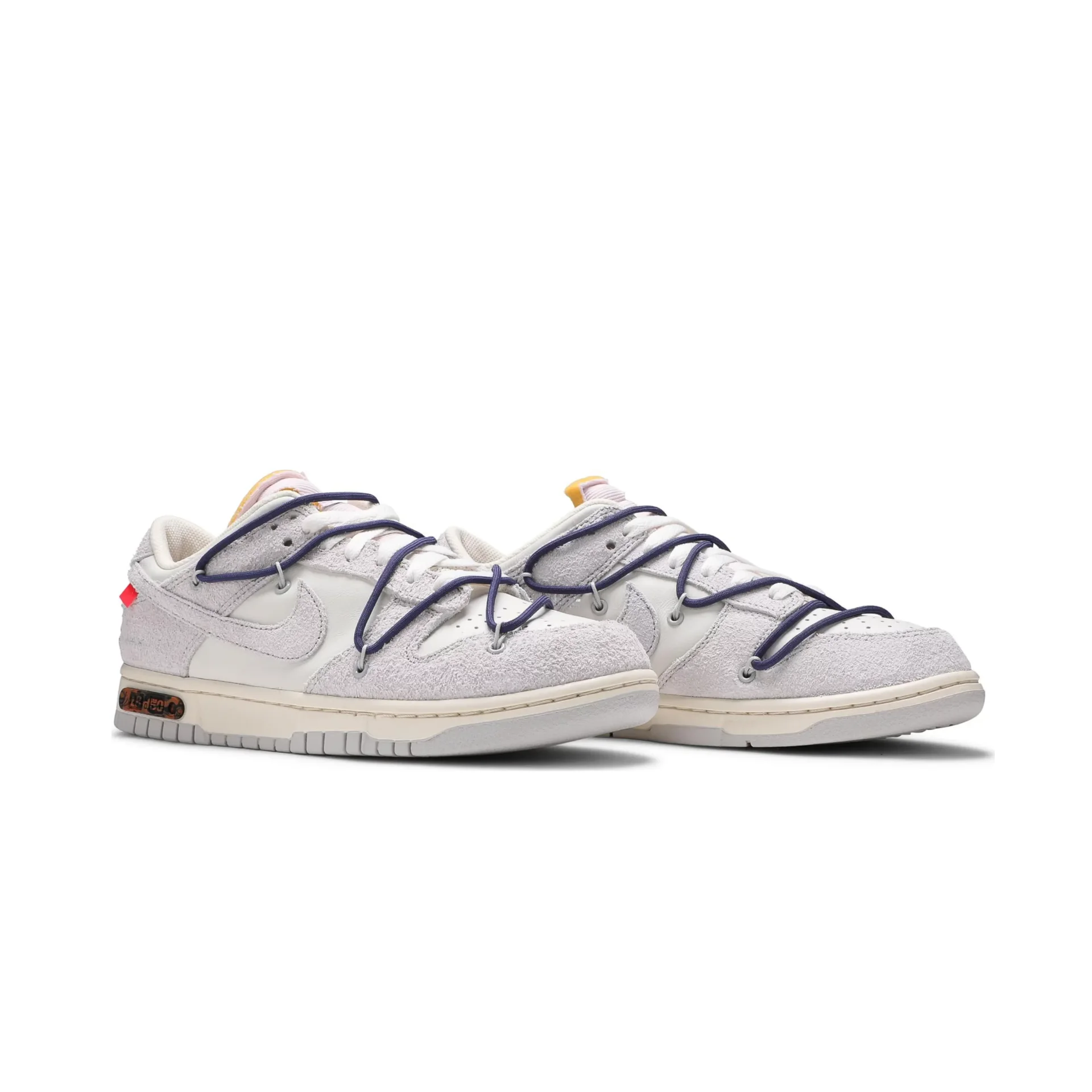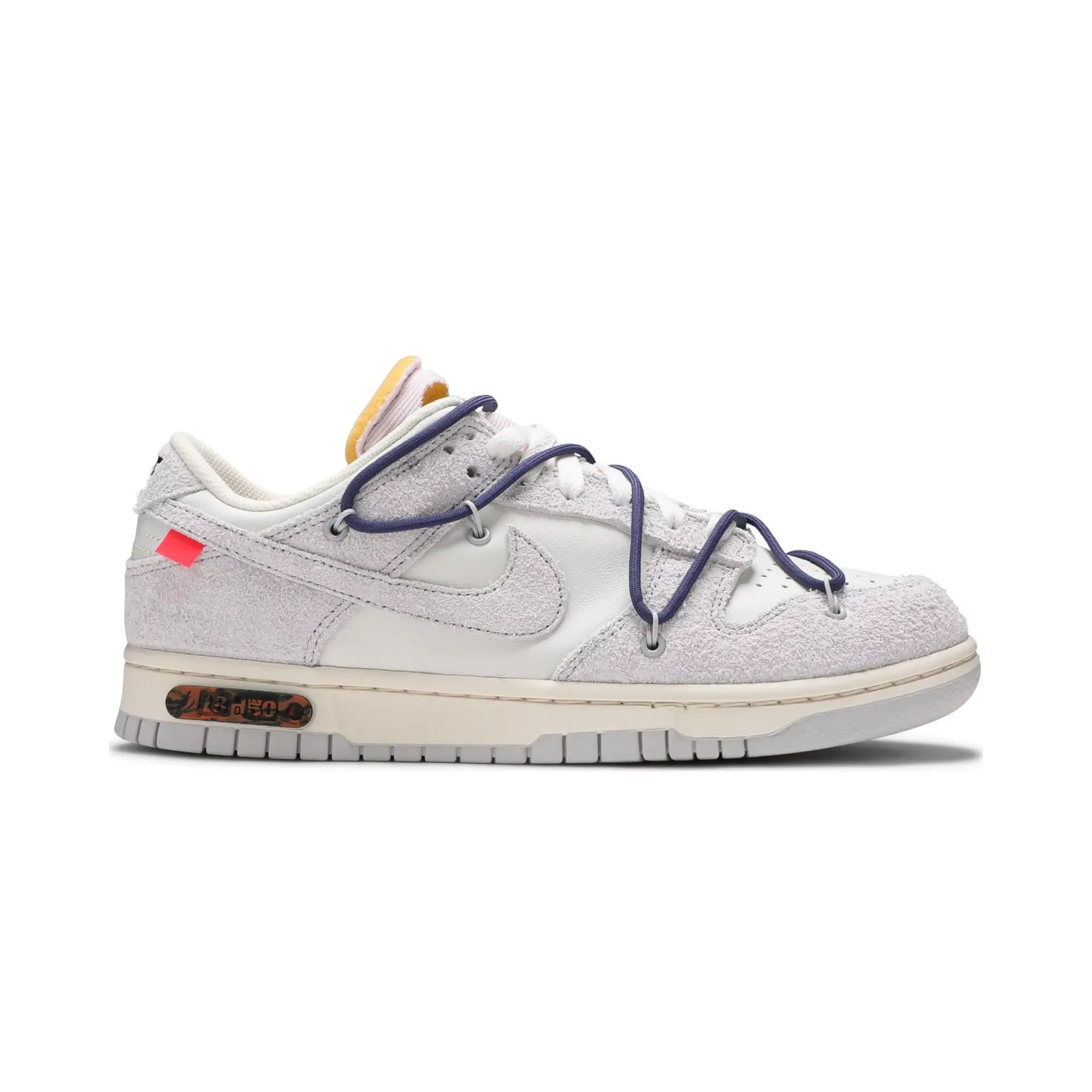 Fiel al estilo Off White, este par incluye espuma expuesta en la lengüeta, el característico zip tie, y el texto lateral en tipografía Helvetica. El distintivo metálico con “Lot 18 of 50” grabado marca su lugar único dentro de la colección.