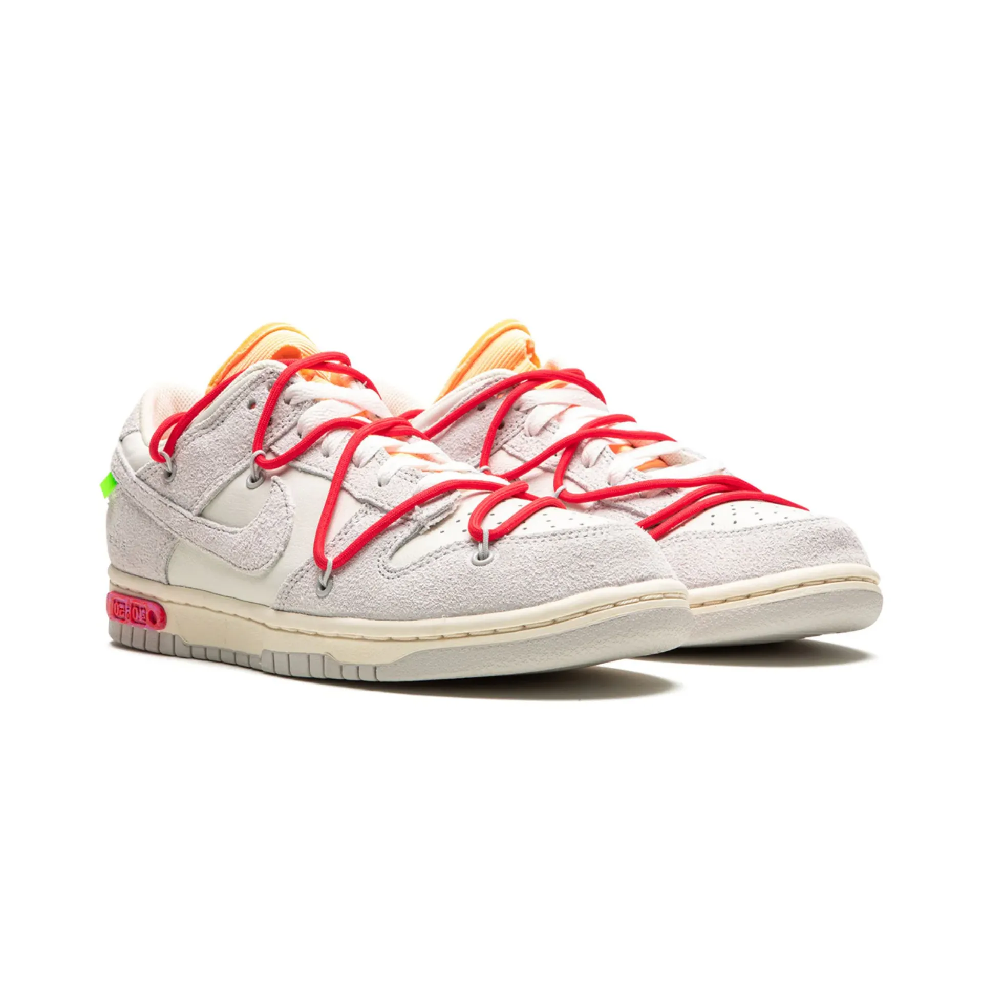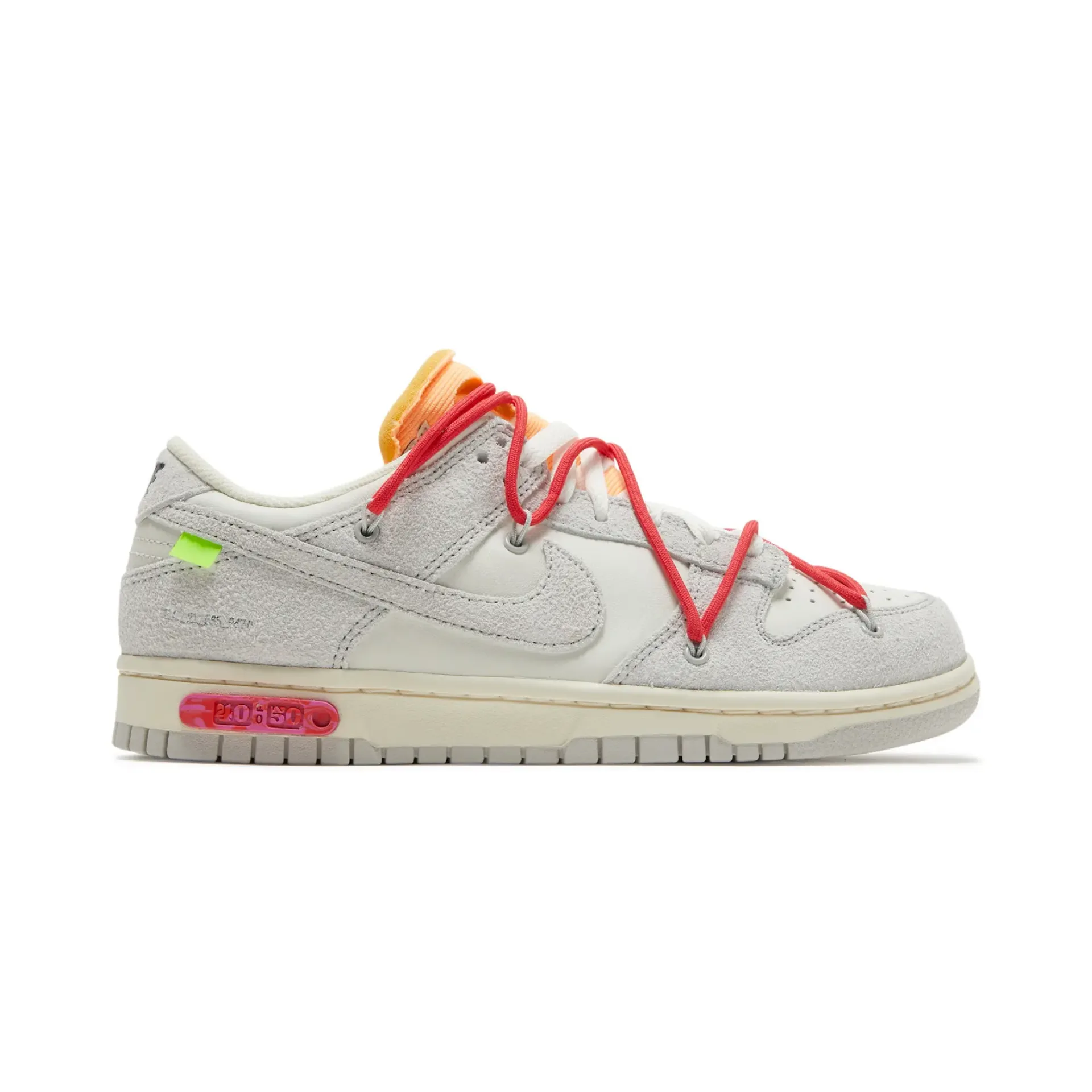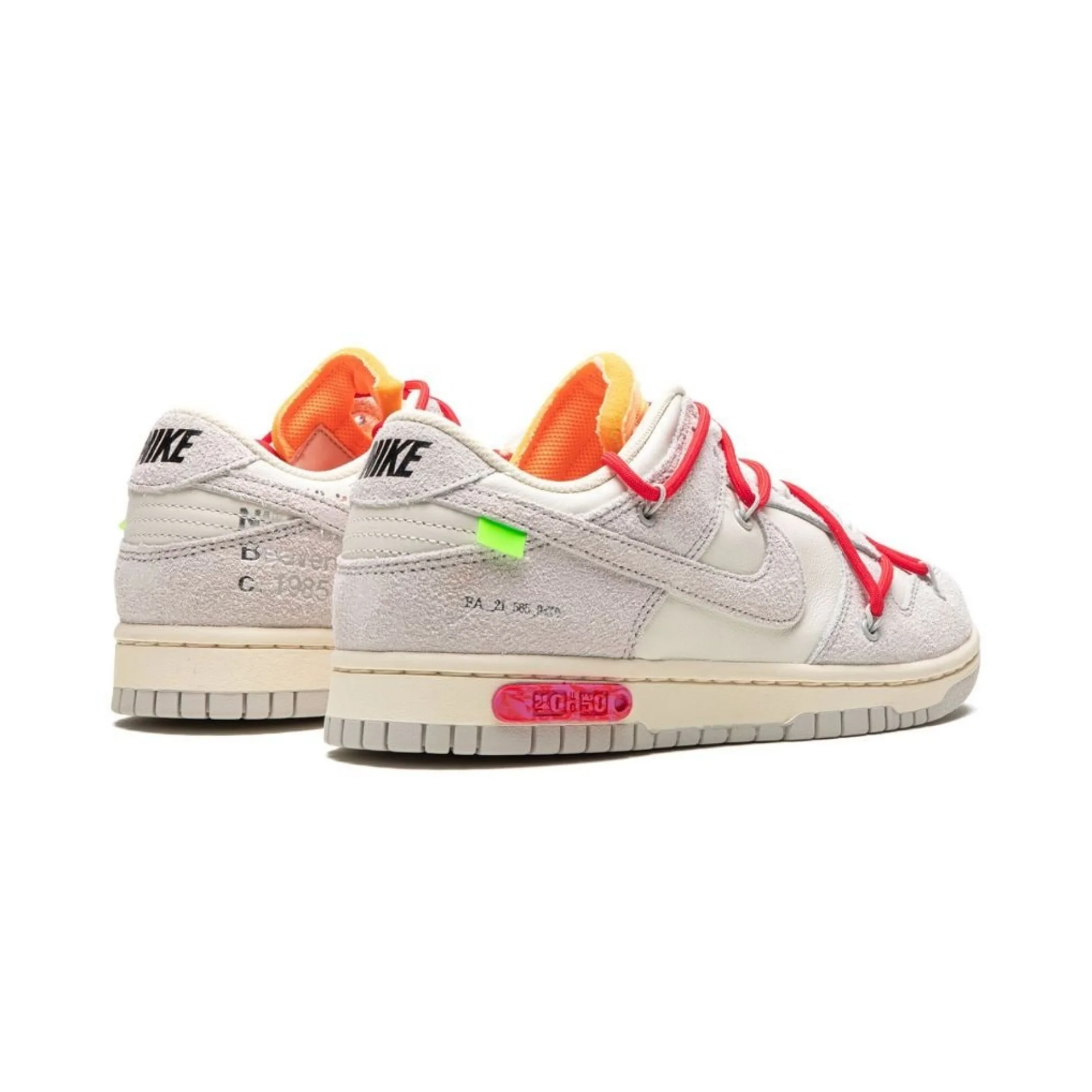 Las Nike Off White x Dunk Low Lot 40 se posicionan como una de las combinaciones más elegantes del pack The 50. Su estética depurada y la presencia sutil de rojo burdeos ofrecen una mezcla equilibrada entre diseño técnico y sofisticación urbana.